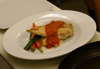 Pasta de la Casa (pasta, salmon, artichokes, asparagus, olives in a thin cream sauce)