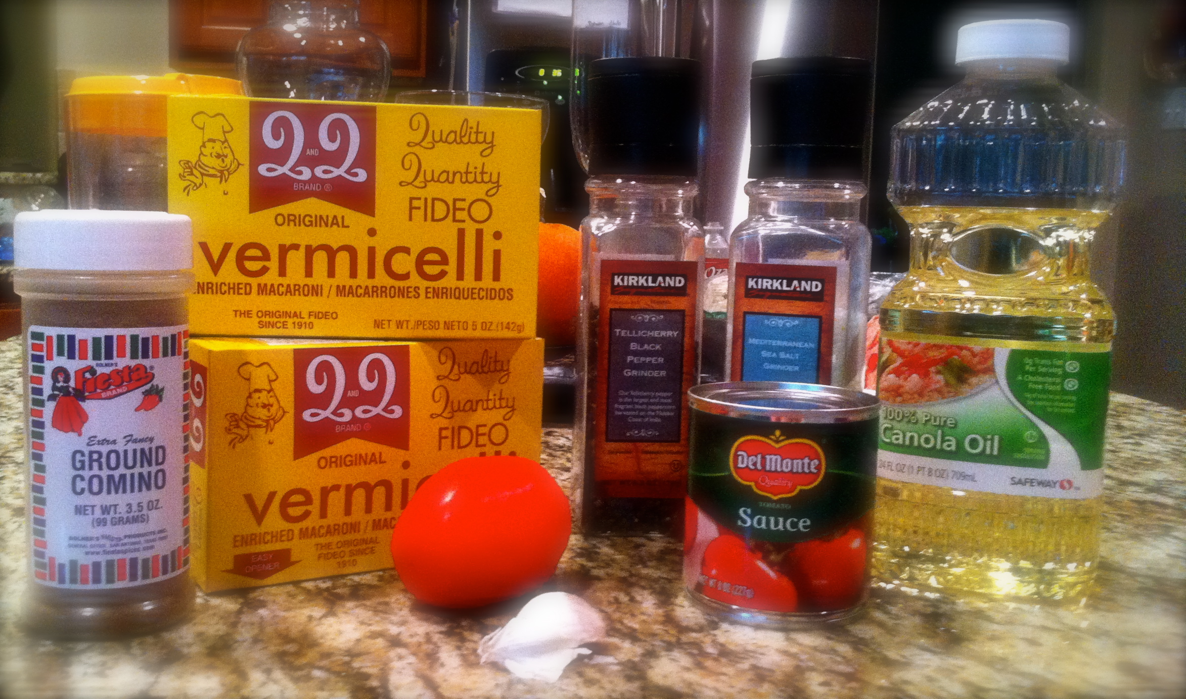 - 1-2 boxes Fideo (otherwise known as vermicelli) * this was seriously $0.27 at HEB