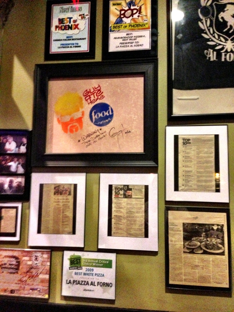 La Piazza Al Forno was featured on Diners, Drive-Ins and Dives our favorite Food Network show a few years ago. Its located in the north Phoenix neighborhood of Glendale, AZ. Its a brick oven pizzeria featuring super thin crust pizzas filled with fresh Italian ingredients.